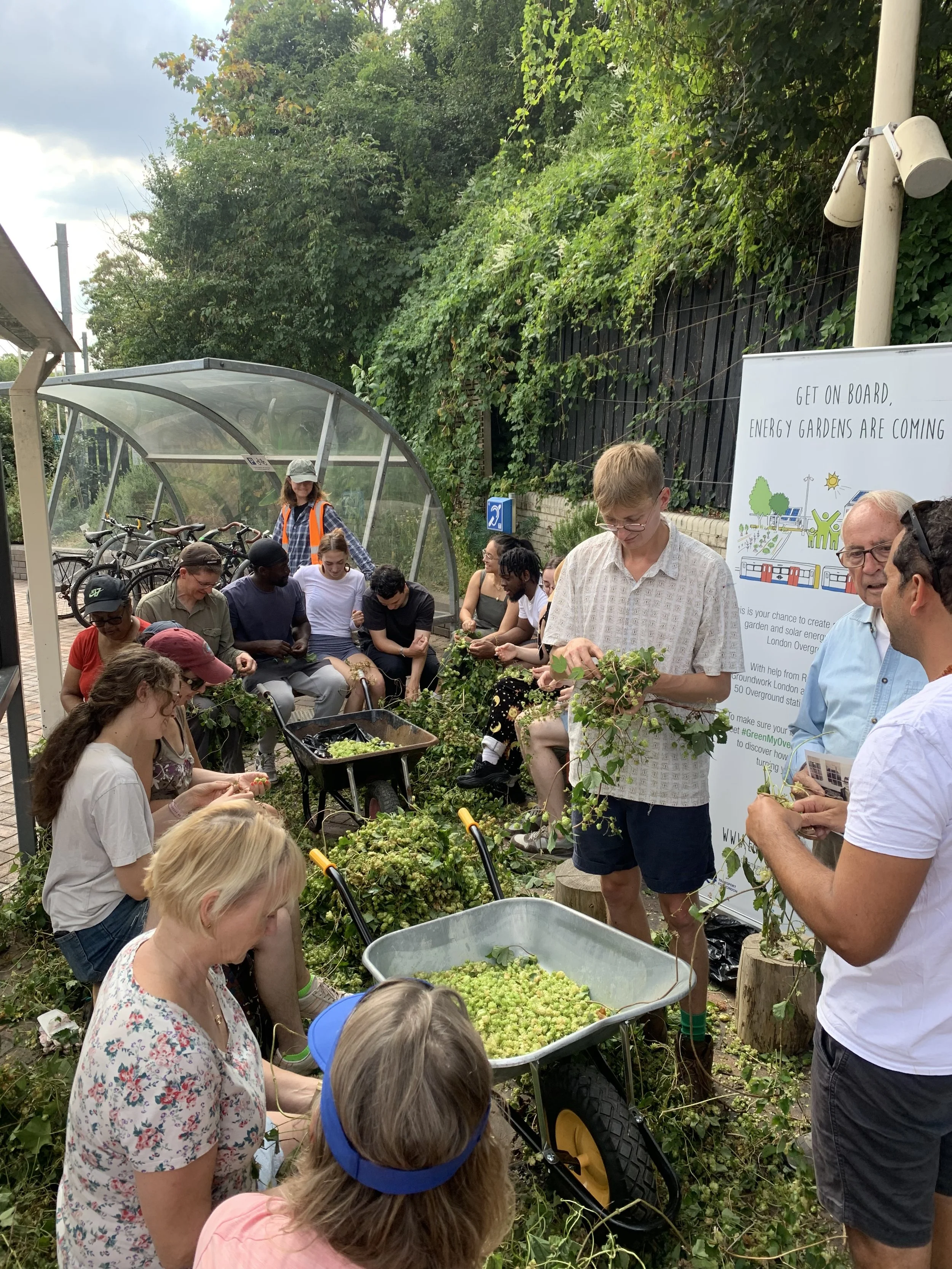 Our hops are grown in thriving gardens across London Overground stations, lovingly tended by local volunteers. Beyond hops, these spaces enabled cleaner air, richer biodiversity, and a more beautiful commute for thousands of Londoners every day.