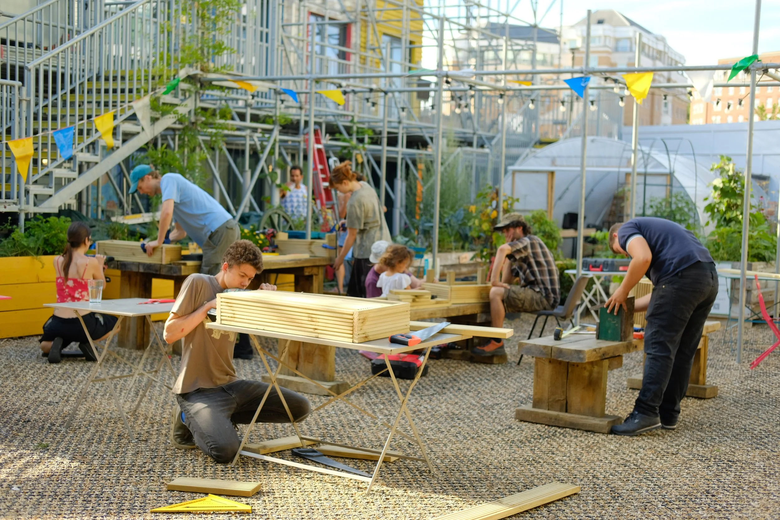 This summer, the Ebury Edge Energy Garden courtyard buzzed with the sound of saws, drills, and laughter as local residents and community came together for our free community carpentry workshop series.