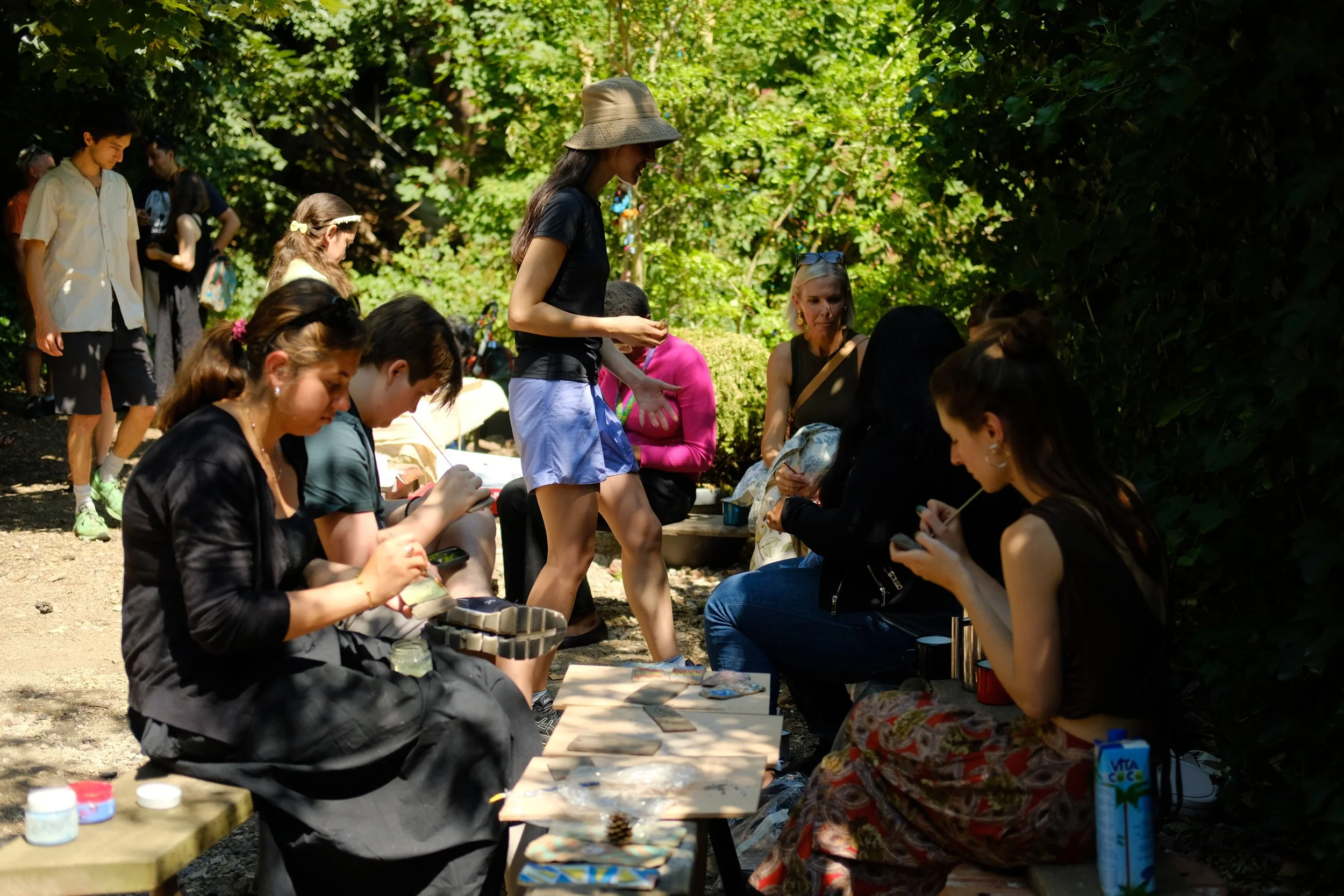 Toby Laurent Belson guided participants in crafting handmade clay pathway tiles, inspired by the plants and textures found in the garden. Participants scored, pressed, and printed natural patterns into the clay before adding colour — each tile a unique expression of the maker’s creativity and connection to nature.