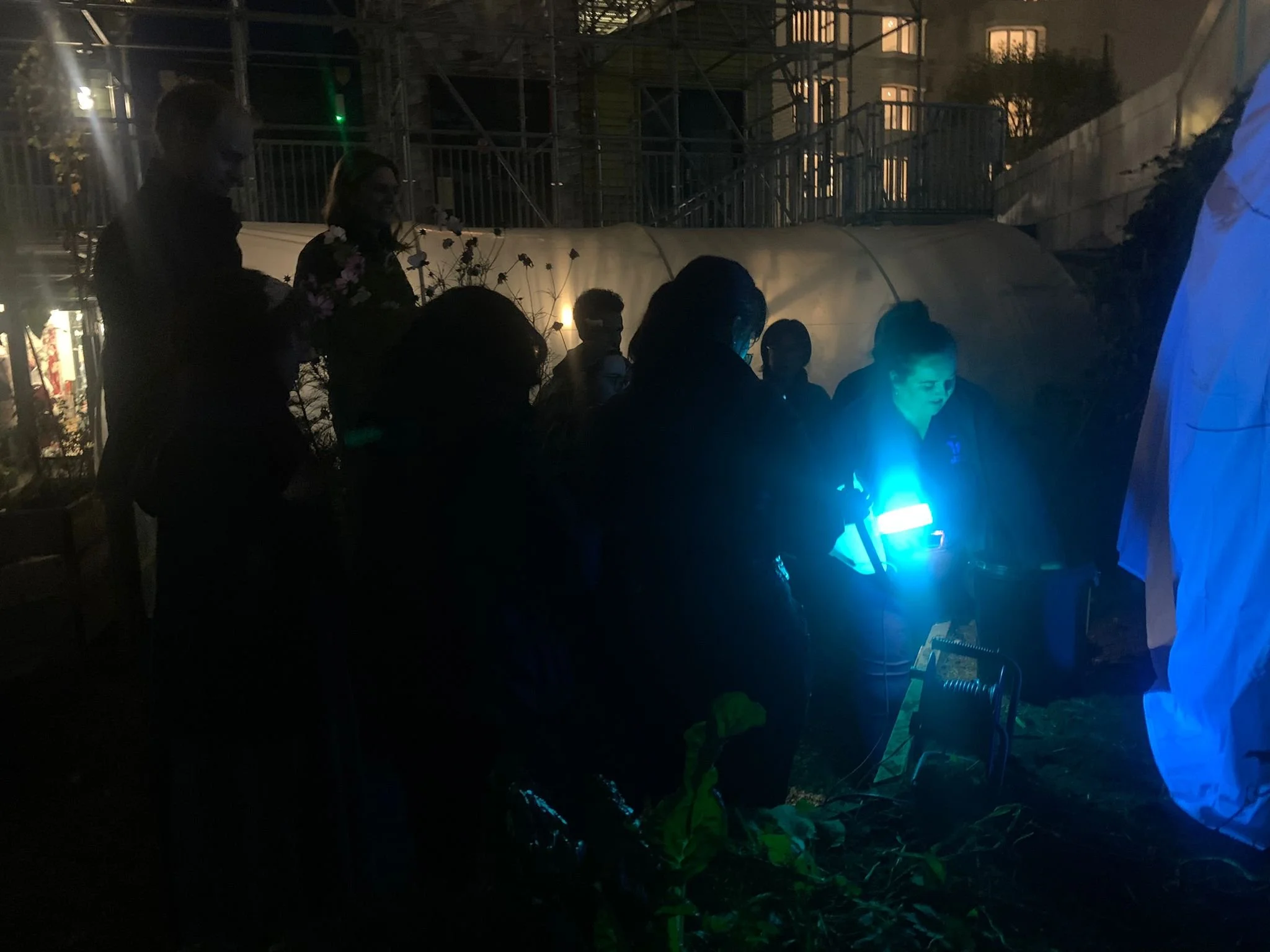 The group checking on the moth trap.