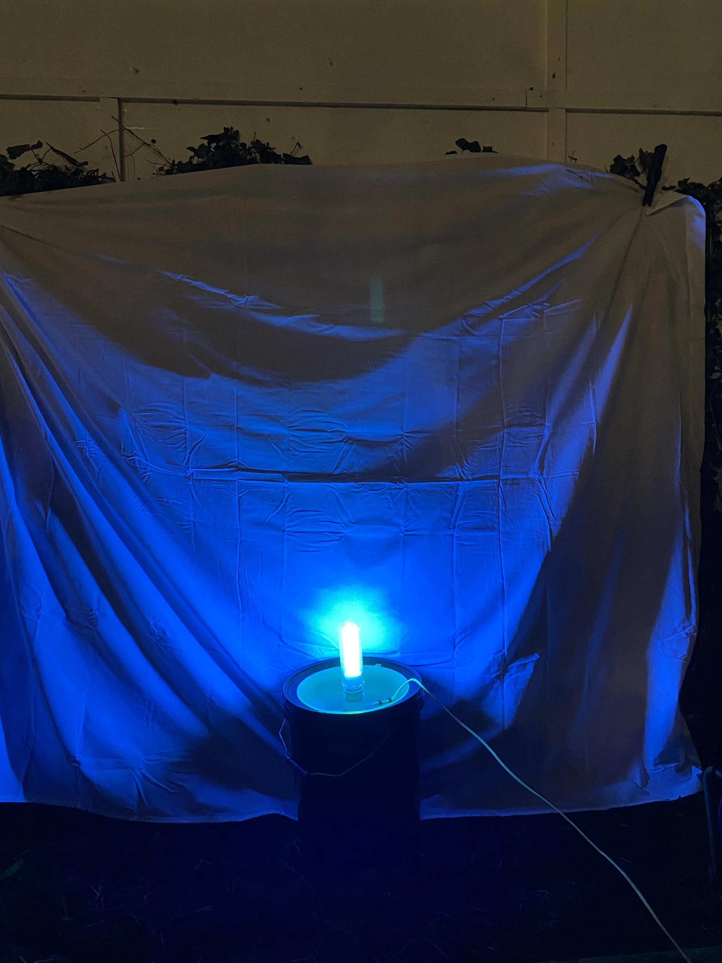 You might be wondering what is moth trapping? It is a way to survey night-flying moths by using a bright light to attract and temporarily trap the moths in a container. To amplify the light’s brightness, we hung a white sheet behind the trap.