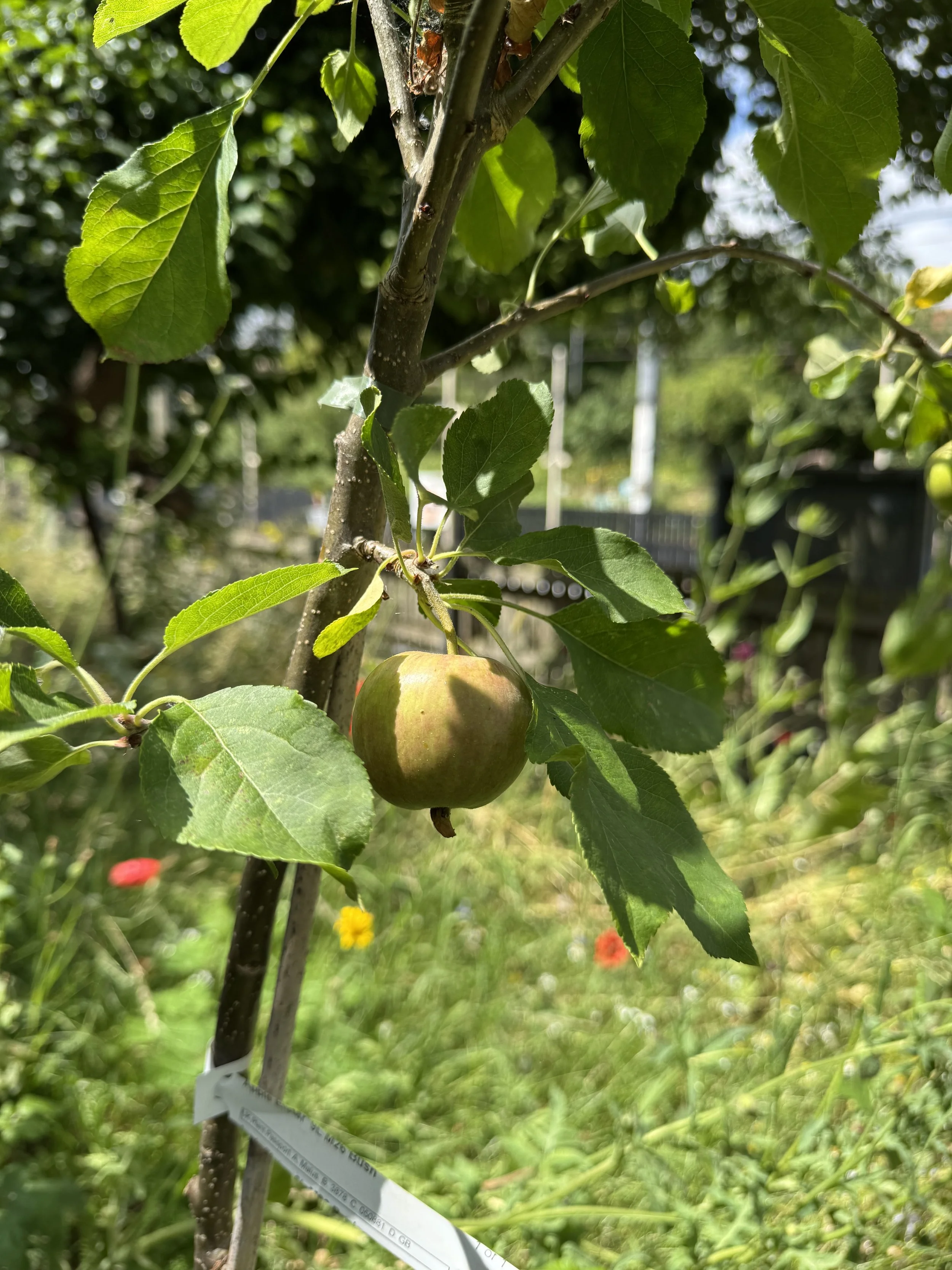 Coming up on a year since the orchard was planted, the space has seen incredible transformation. From brambles towering 2.5m over the platform to a diverse mixed species habitat where fruit and nut trees are accompanied by wildflowers, grasses, poppies, and thistles; the treescape on Platform 1 is settling into itself. Throughout its first growing season, the orchard has enriched the station with explosions of colour and now fruit! August saw the orchard’s first harvest – juicy Victoria plums and apples from Elstar, Blenheim Orange, and crabapple trees.
