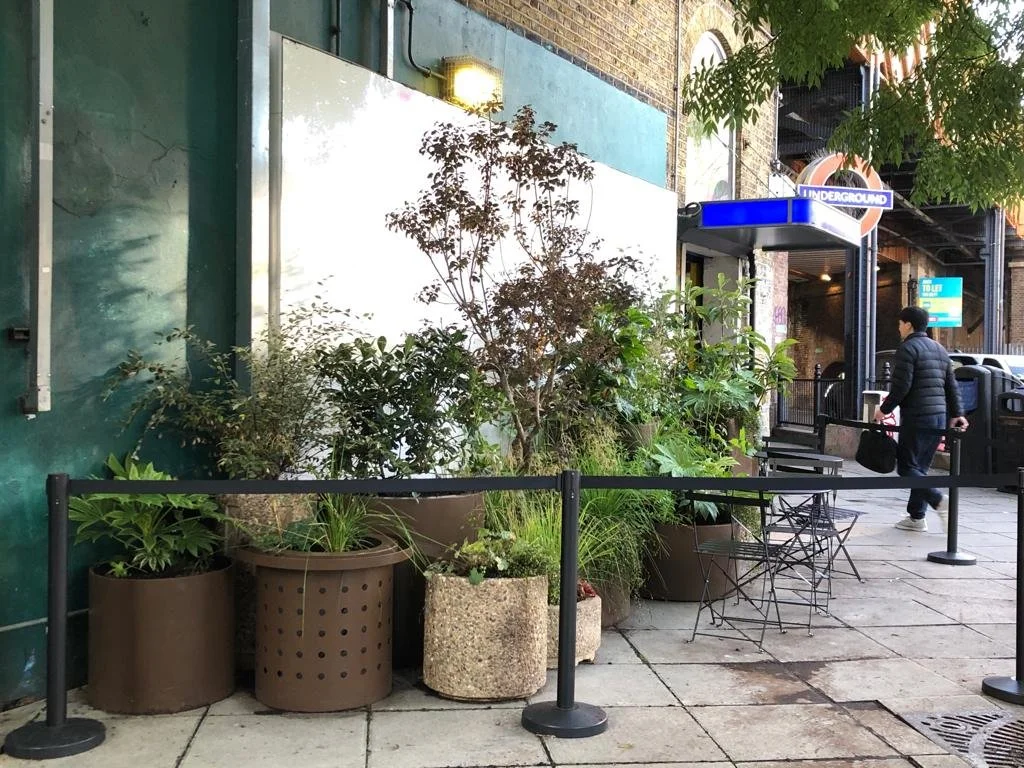A blast of green life and colour in front of Latimer Road Station.